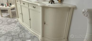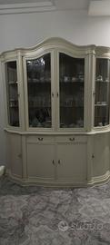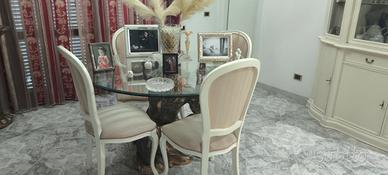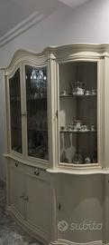vendo soggiorno completo. Tavola con cristallo e 4 sedie, mobile con specchio e mobile con vetrina. color panna. prezzo trattabile.