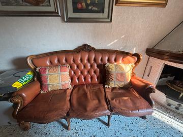 Vendo soggiorno completo anni 70 composto da tavolo rotondo e allungabile, 6 sedie , divano e 2 poltrone in pelle .