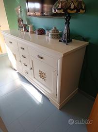 stile classico vetrinetta tavolo quattro sedie e mobile.