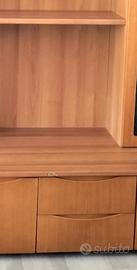 parete attrezzata 270L rovere, nuova d'esposizione...con piccolo difetto sul top come da foto..(svendo per il difetto).. è tutta il legno con gole nelle ante .. perfetta a parte il difettuccio, mobile di qualità