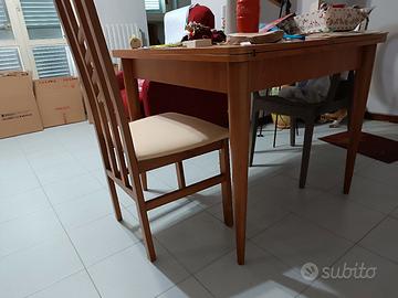 mobile soggiorno in legno color ciliegio+ tavolo 90x90 allungabile a 180 + 6 sedie