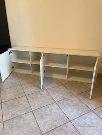 Mobile basso bianco con ripiani interni uno a giorno e tre ante con apertura a pressione misure 180/36/62 si puo usare sia in soggiorno che in cameretta o anche come scarpiera come nuovo euro 80. Divano grigio chiaro con alzate manuali marca Poltrone e sofà usato pochissimo ottimo stato euro 150 tavolinetto ikea bianco panna in regalo.