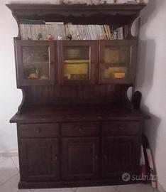 Vendesi soggiorno rustico composto da credenza, tavolo, panca e due sedie.