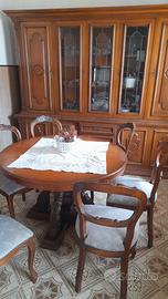 Vendo soggiorno rustico usato composto da 6 sedie imbottite +tavolo tondo allungabile +divano 2 posti +mobile vetrina Vendo anche separatamente non trasporto