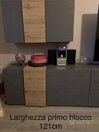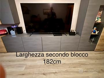 Parete attrezzata soggiorno, misura totale larghezza 424 cm riducibile mettendo vetrinetta o blocchi in altra parete profondità 42cm