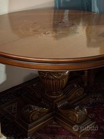 Vendo mobile da sala pranzo in stile classico, tavolo rotondo allungabile e sei sedie coordinate.