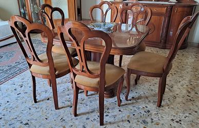 vendesi soggiorno stile classico completo di mobile vetrinetta,mobile basso con specchio ,tavolo allungabile con 6 poltroncine.