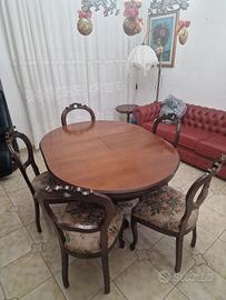 Vendo soggiorno stile classico tradizionale in ottime condizioni come in foto, realizzato in legno massello, completo di tavolo apribile e 6 sedie. Vendo al miglior offerente.