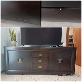 Vendesi soggiorno in stile etnico, acquistato in mobilificio, come si vede dalle foto ci sono dei segni dovuti al tempo, color legno noce scuro, materiale davvero super!