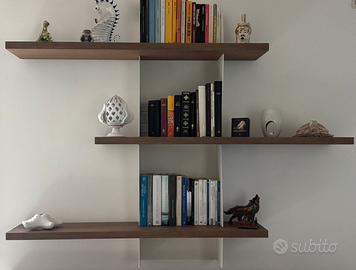 Il soggiorno è comprensivo di mobile Tv con credenza, mensola e scrivania regolabile; madia; libreria sospesa.