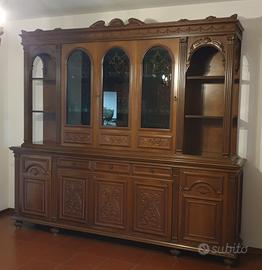 armadio in legno massiccio con tavolo ottagonale e 6 sedie imbottite
