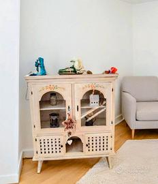 soggiorno arte povera tavolo sedie panca e piattaia in massello, vetrina + vetrinetta prezzo lotto 400€