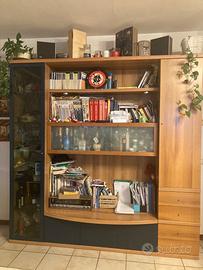 Mobili in ottime condizioni in legno di frassino per soggiorno , una vetrina e un mobile base , profili blu , ritiro in loco