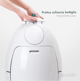 SoldiDesign Ovetto: contenitore design per la raccolta differenziata, Colore Grigio NUOVO Marchio:SOLDIDESIGN Capacità:54 Litri Colore:GRIGIO Materiale:Plastica Peso articolo6 Chilogrammi contenitore salva-spazio alto 84cm per la raccolta differenziata dotato di tre scomparti indipendenti di 18 litri ciascuno (54 litri in totale). Cestino 3 in 1 che può contenere fino a 15 bottiglie di plastica schiacciate. Adatto per sacchetti di misure standard SCOMPARTI INTERNI: Gli scomparti interni hanno una capacità di 18 litri ciascuno (54 litri in totale) e sono caratterizzati da contenitori interni forati che permettono una costante areazione della pattumiera e l'evaporazione della condensa del rifiuto umido, riducendo sensibilmente i cattivi odori ed evitando la formazione di liquidi; i sacchetti; previsti sono quelli standard da 25/30 litri OGGETTO DI DESIGN: Questo contenitore per la raccolta differenziata è un oggetto di design : è realizzato in materiale plastico riciclato (abs e polipropilene); è 100% made in italy e con il suo stile accativante rappresenta una rivoluzione di design che consente una raccolta differenziata facile e veloce, ovetto si inserisce in ogni ambiente in quanto esteticamente non rappresenta un cestino ma un oggetto di arredo