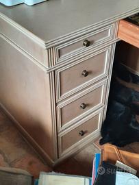 Desk solid Yugaslavian beechwood. 6 drawers, each with secret compartment, I cupboard with two compartments. Excellent condition. Comes with on upholstered chair also excellent condition.