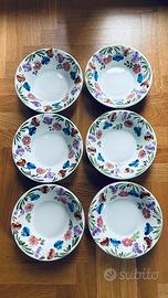 6 Meravigliosi piatti fondi di Richard Ginori Mondovì. Serie Paola, decoro primavera.