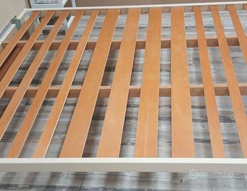 Letto sommier una piazza e mezza (120x200), legno bianco effetto naturale, con rinforzi alle toghe centrali, massello di alta qualità, acquistato in negozio mobilificio ( no catene tipo ikea ecc). Nessun graffio ottimo stato, poco utilizzato per arredare una terza camera ora adibita a studio. Nel prezzo per la qualità della struttura regalo anche il materasso. Le prime foto per intendere il tipo di letto senza testiera.