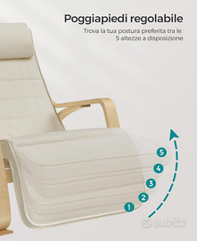 [Poggiapiedi regolabile] Questa sedia a dondolo ha un poggiapiedi regolabile in 5 diverse posizioni. Che tu voglia sdraiarti un po’ o leggere, troverai la postura che preferisci