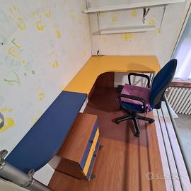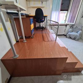 soppalco per cameretta, il letto da una piazza e mezza si infila sotto. Dimensioni totali m 277x183. Grande mensola di appoggio con scrivania, poltroncina e cassettiera. No libreria. Ritiro in loco, a cura dell'acquirente. Dopo il 6/11 posso formire già smontato. A disposizione per ulteriori foto e info.