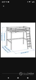Vendo letto a soppalco Ikea modello Stora, dimensioni 140x200, colore bianco, ottime condizioni, completo di scala.