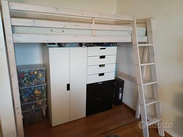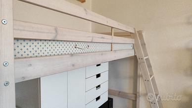 Soppalco bellissimo in legno con vernice semitrasparente bianca, comprese doghe. E' escluso il materasso. Misure 200 cm x 90 cm. Letto singolo usato poco, in buone condizioni come da foto. Ritiro di persona a Milano, zona sud. No spedizioni. Esclusi tutti i mobili e le scatole visibili nella foto. Solo struttura letto in legno.