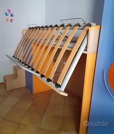 Soppalco composto da 1 armadio L 45 + elemento libreria a giorno con vano per inserimento 2° letto (non compreso) + scaletta laterale apribile uso contenitore + letto superiore con meccanismo ribaltabile per agevolare il rifacimento del letto. Pagato oltre € 2.000,00 vendo a € 150,00