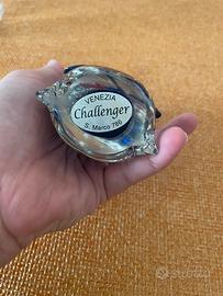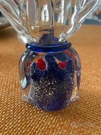Vendo bellissimo elemenro di arredo in vetrondi murano ORIGINALE, rappresentante un sacchetto con fiocco blu contenente uno scoglio blu con brillanti e due pesci rossi.
