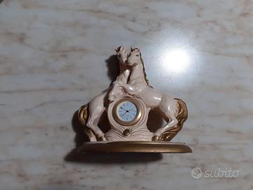 Soprammobile 15 x 15 cm con 2 cavalli e orologio