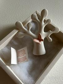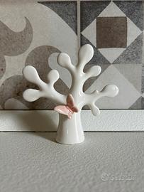 Espositore soprammobile arredo casa a forma di alberello della vita in raffinata porcellana bianca con piccola farfallina color rosa.