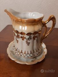 Antica caffettiera e lattiera in porcellana, decorata in oro zecchino, anni primi 900