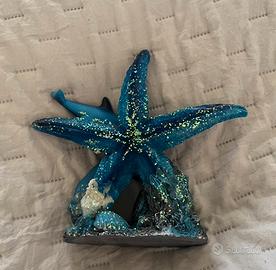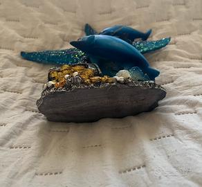 Vendo Soprammobile decorativo a tema marino con delfini, stella marina e forziere. Colori blu con dettagli brillanti.