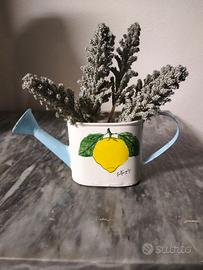 Soprammobile a forma di annaffiatoio in metallo dipinto a mano. Misura cm 5 larghezza, cm 8 altezza e cm 8 lunghezza mentre l'intera lunghezza è di cm 18. Tutto come da foto.