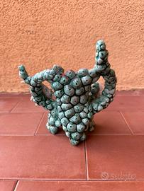 Soprammobile in ceramica smaltata, probabilmente di manifattura artigianale o da souvenir. Raffigura due pesci tropicali colorati che ruotano attorno ad un corallo. Lo stile ricorda la produzione italiana degli anni ‘60-‘80. Non possiede marchi particolari.