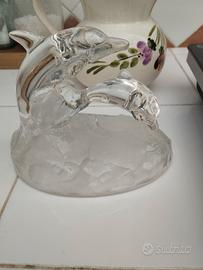 Elegante soprammobile in vetro stile boemia raffigurante delfini sulle onde del mare.