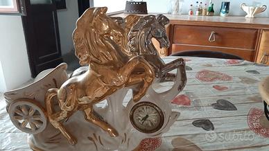 Soprammobile in ceramica raffigurante biga trainata da 4 cavalli (due color oro e due color argento). E' presente un orologio Mercedes funzionante. Spese di spedizione a carico dell'acquirente.