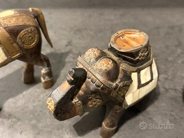 Set di soprammobili stile etnico, in legno pieno con inserti in madreperla.
