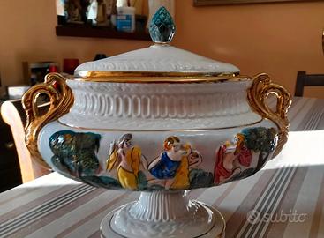 Soprammobili in ceramica (3 pezzi),dipinti a mano con foglia d'oro zecchino sui bordi,risalenti a metà 1900