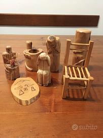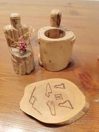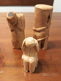 7 piccoli soprammobili in legno di olivo intagliati a mano