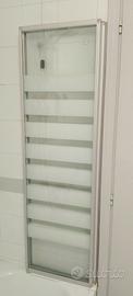140 cm Sopravasca Tre Ante Pieghevoli a Libro Vetro 4 mm Temperato Fasce Bianche Opache Telaio Argento Opaco 130 cm box doccia