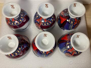 Stupendo servizio da macedonia/gelato in ceramica composto da 6 pezzi dell’artista cubano Alfredo Sosabravo (in arte "Sosabravo"). Collezione "Arte en Casa". Le misure di ogni singola coppa sono: diametro base 6cm, diametro alto 10 cm, altezza 9cm.