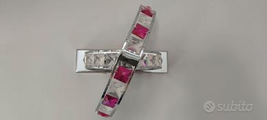 - Plafoniera Micron serie Queen mod. M5212 (montata in salone) diametro 50 cm con 2 archi fissi e 3 movibili con cristalli colore fucsia e trasparente. Monta 12 lampade G4