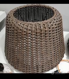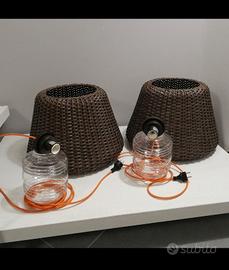 Coppia di sospensioni PALZERI - Ralph per esterno con paralume in rattan sintetico di colore marrone. dotate di portalampada E27 e di un cavo di alimentazione arancione lungo 4,5 metri che funge anche da sostegno. Diametro 35 cm, altezza 25 cm.