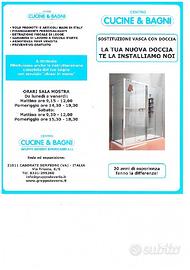 Sostituzione vasca con doccia prezzo eur. 2.698 sostituiamo la vostra vecchia vasca con un nuovo, pratico, moderno, sicuro box doccia o cabina doccia. solo con nostro personale qualificato. tutti gli articoli proposti sono visibili presso la nostra ampia sala mostra. prodotti "made in italy". azienda con esperienza di oltre 30 anni nel settore. rif:2749916