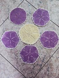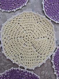 Centrini a l'uncinetto, ottimi anche come sottobicchieri, sono a doppia facciata, in ottime condizioni da come si vede dalle foto. Diametro 12cm. Vendo tutti 6 pezzi a un ottimo prezzo di 15€. Le foto sono parte integrante della descrizione.