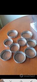 Undici sottobicchieri, e due sottobottiglie . Base in vetro, bordo in metallo color argento.