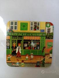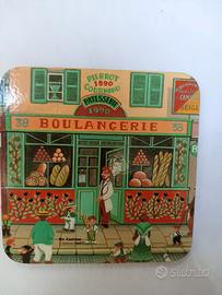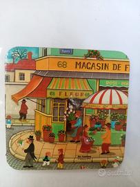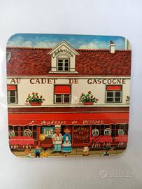 vendo set di deliziosi 6 sottobicchieri a tema Magasins de France, base in sughero