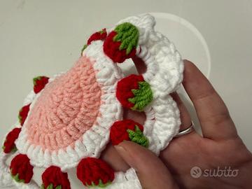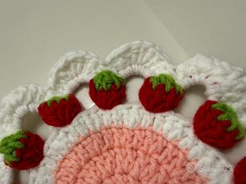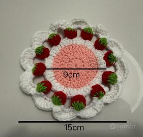 Sottobicchieri amigurumi handmade uncinetto Decorazione fragole Grandezza diametro esterno 15cm Diametro interno 9cm