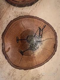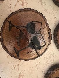 Sottobicchieri in legno di quercia, incisi a laser e trattati con impregnante lucido, di diametro 10cm circa