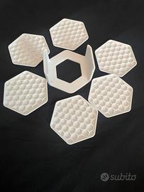 Sottobicchieri con grande diametro (10x10cm) in plastica rigida, stampati in 3D su ordinazione