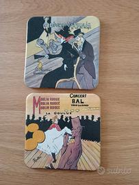 6 sottobicchieri in cartone pressato, mai usati, con immagini ispirate a Parigi + 4 sottobicchieri in legno e sughero, mai usati, Peroni. Solo consegna a mano.